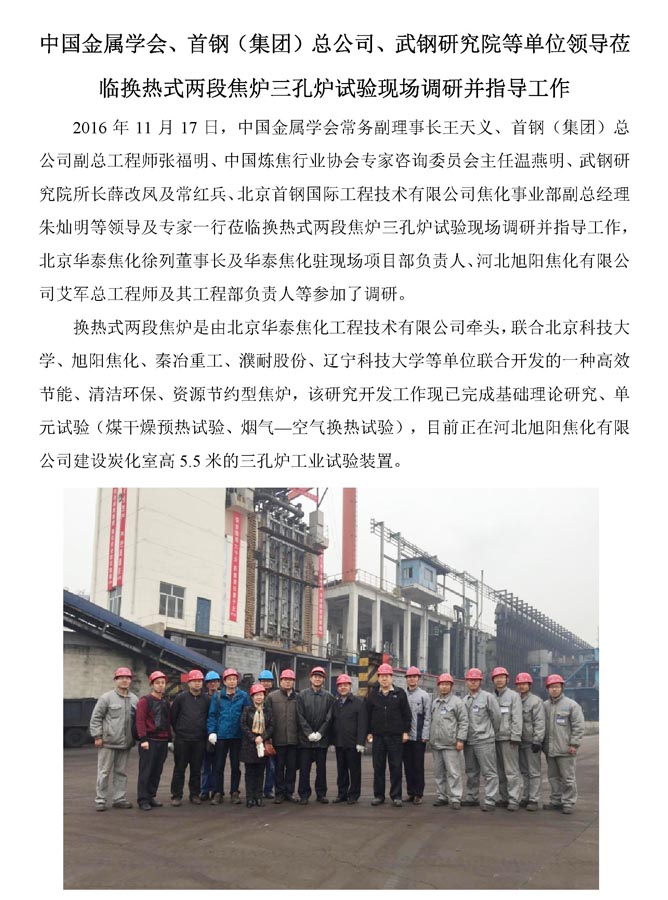 金属学会、首钢、武钢等单位莅临两段焦炉现场调研并指导工作