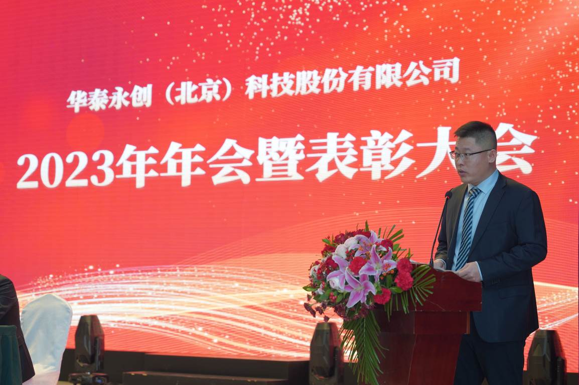 在颁奖典礼上,先进个人代表卢丹妮、先进项目经理代表姜士敏、先进中层代表王双平、优秀管理者代表陈本成以及先进个人智维公司代表尹志东,相继上台发言,满怀激情地分享了自己成长的内心感悟与奋斗的心路历程。在新的一年里,他们号召全体同事顺应时代潮流,紧密合作,克服困难,勇往直前,全力以赴完成2024年度的各项目标任务,共同开创华泰更加辉煌的明天。